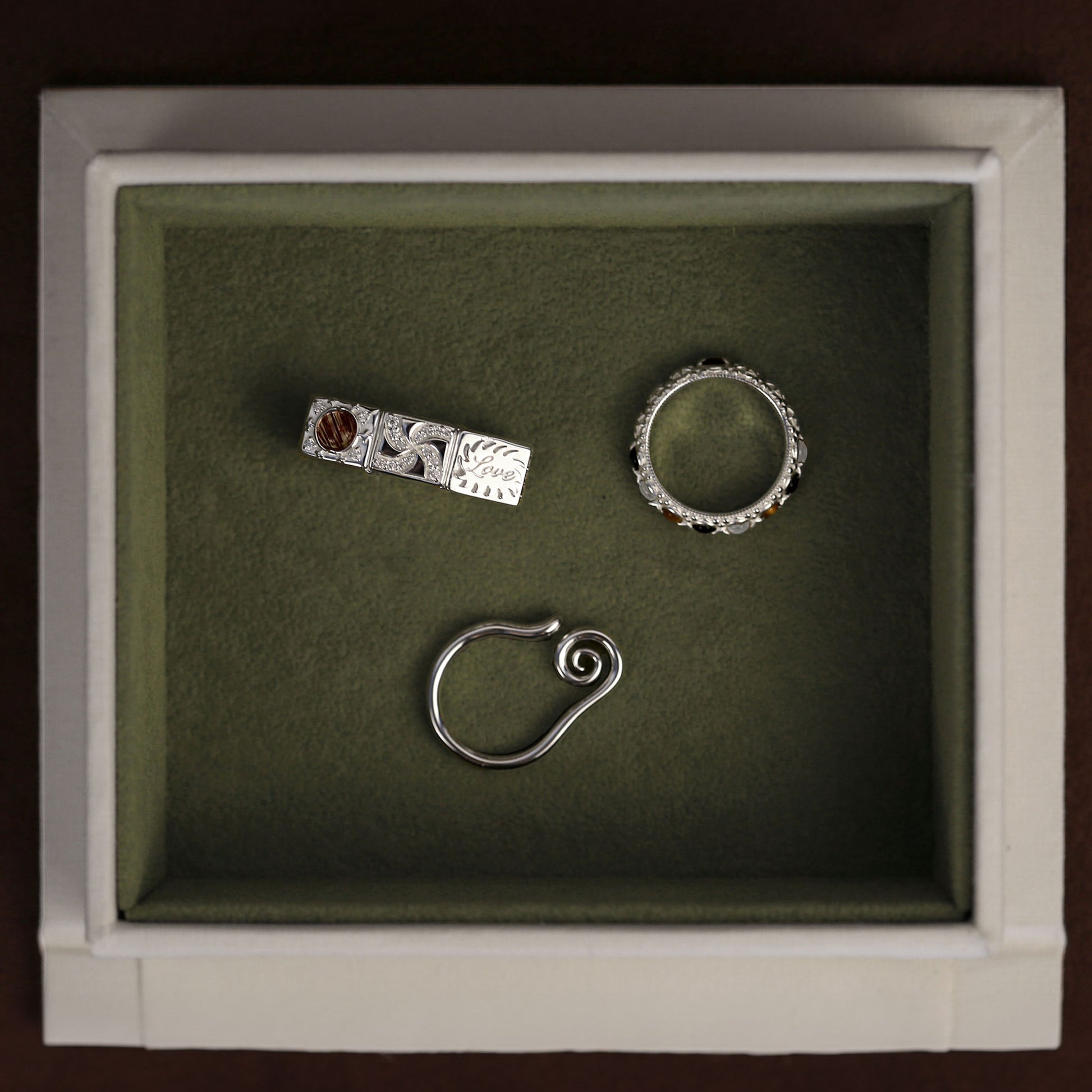 We are proud to use precious metals that are entirely recyclable. Silver, with proper care, can be worn indefinitely, while gold remains an eternally valuable material, as evidenced by the ancient jewellery pieces displayed in museums worldwide.