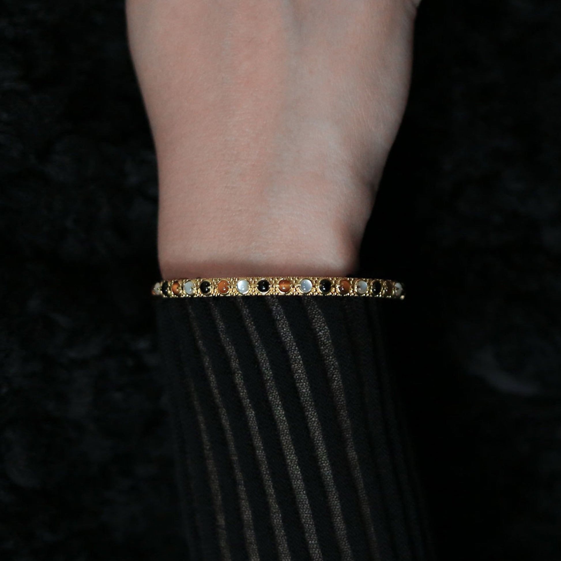 Stone: 3mm Tigereye, Onyx, Quartz(white shell behind)